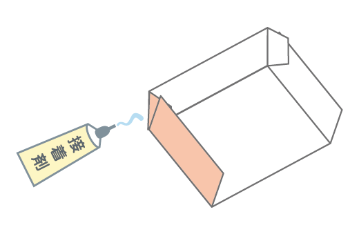 〈3〉で切ったエレベーターを組み立て、接着剤(せっちゃくざい)で止めます。