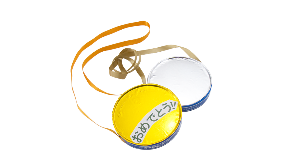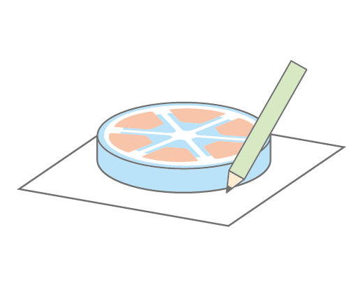 6Pチーズの箱を色紙にのせて、えんぴつなどで丸く線(せん)をひきます。線にそって切り取ります。