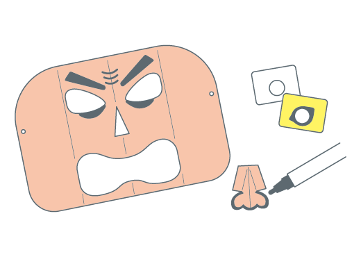 マジックで、まゆ毛や、鼻(はな)の輪郭(りんかく)などを かき込みます。