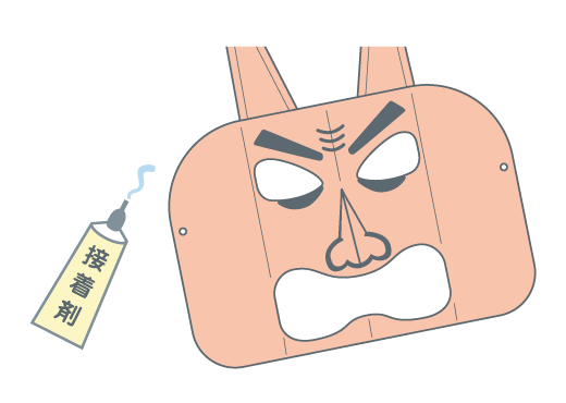 裏(うら)から角(つの)を、接着(せっちゃく)します。