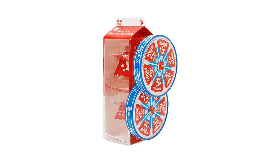 6Pチーズのフタ2こは、真ん中に竹ぐしをとおす穴をあけます。