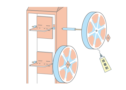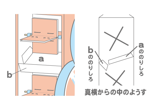 〈4〉で切りとった〈a〉をつけて、次に〈b〉を接着します。