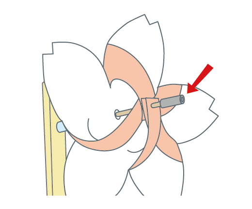 〈4〉の竹ぐしにさし込み、羽が外れないように押さえる。 -