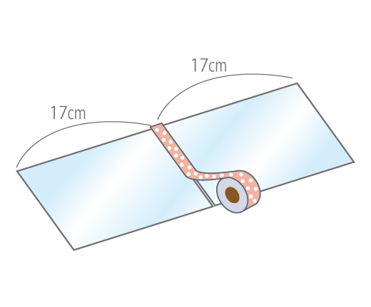 高さがあるボックスを作る場合は、クリアファイルを、横幅(よこはば)17cmに2枚切り取り、一片(いっぺん)をメンディングテープではり合わせます。