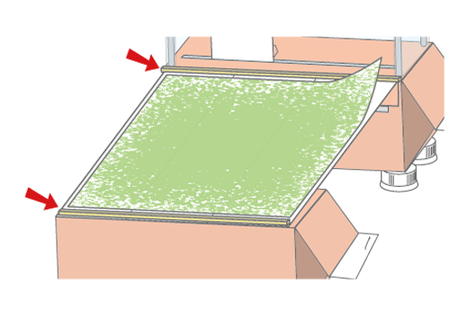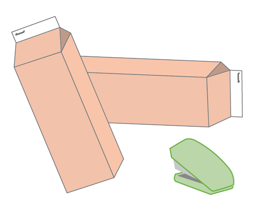 牛乳パック2こは、注ぎ口(そそぎぐち)を、ホチキスでとめます。