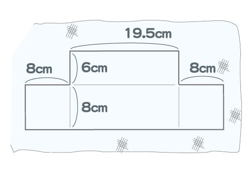〈7〉で使った、残りの牛乳パックを、図のサイズに切ります。