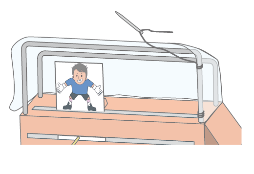 洗濯(せんたく)ネットを、ゴールネットの形に切ります。 -