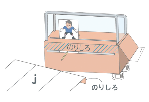 画用紙(がようし)は、芝生色(しばふいろ)に色をぬり、〈j〉にはります。