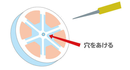 6Pチーズのフタの中心に、穴(あな)を開けます。