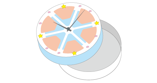 フタの裏(うら)から、時計(とけい)のムーブメントをはめ込みます。