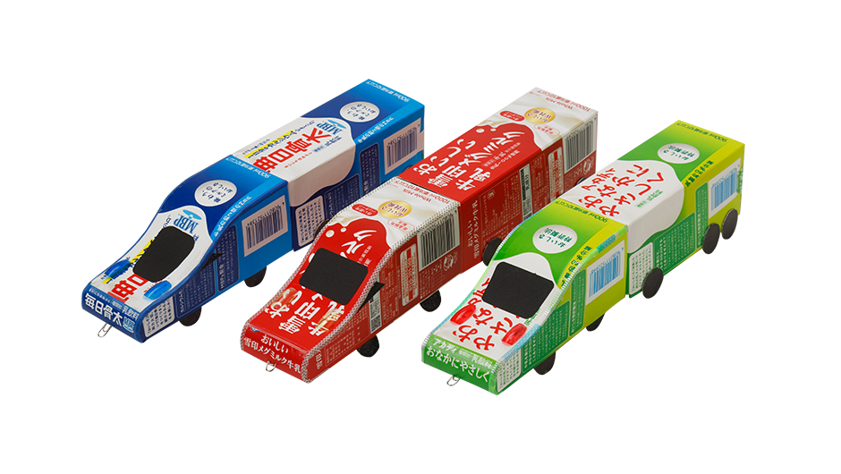 牛乳パックの、底(そこ)を切るときは、とても硬(かた)いので、大人(おとな)のひとにてつだってもらいましょう。