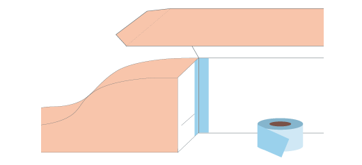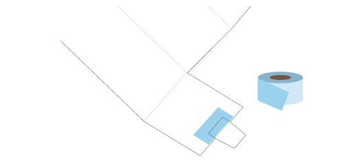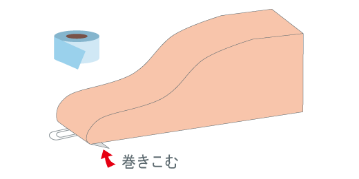 横面のボディのラインに合わせて、紙パックの上部の部分をかぶせて巻きこみ(まきこみ)、テープでとめます。
