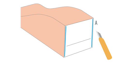 紙パックの底の部分に、2本の切り込み〈A〉を入れます。