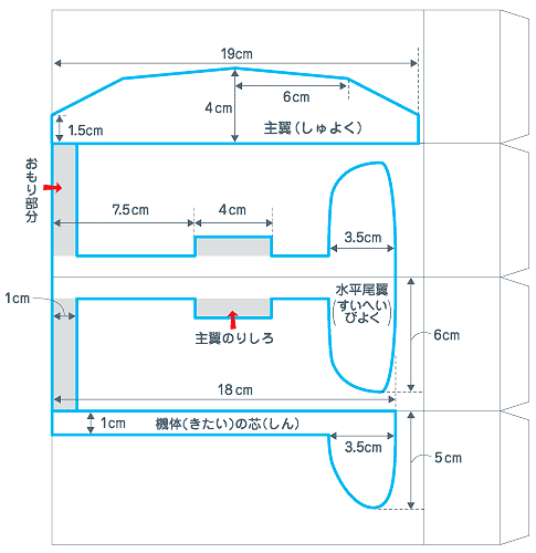 紙飛行機(かみひこうき)の詳細図(しょうさいず) / 楽しい工作 / 牛乳パックでつくろう