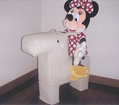 その作品が学校から返ってきたので、写真とお手紙を送ってくれましたので、ご紹介いたします。お母様のお手紙には「「いす」として作ったのですが、返却されてから別の用途としても使っています。テーブルにしたり、枕にしたり・・・。