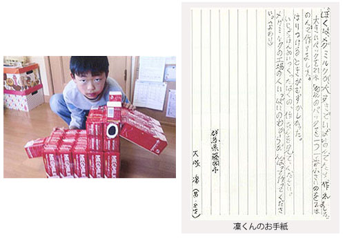 「雪印メグミルクのホームページで作品を見て、子どもたちが感動したことから、工作に取り組んでみました。」とのこと。