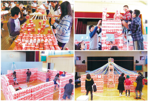 6年生17人による共同制作で、図工の授業内で組み立て、「上小(上沼田小学校)キャッスル」という大きなお城をつくりました。