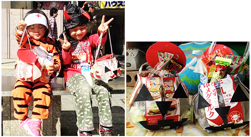 「地元の商店街のハロウィンパーティーに参加する際に、「牛乳パックで作ろう」を参考にして、兄弟でかぼちゃのかごを作りました。」とのこと。