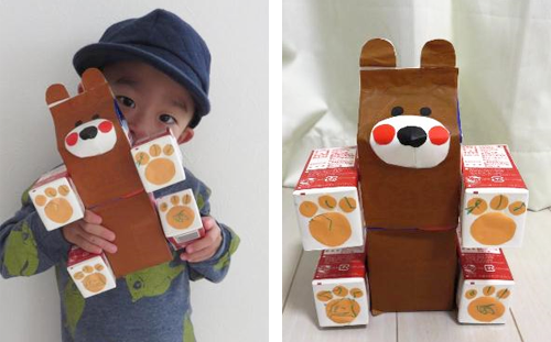 紙パック工作ではありませんが、札幌市の『ままろん』さんから可愛い作品の写真とお便りが、メグミルクへ届きましたので、ご紹介いたします。