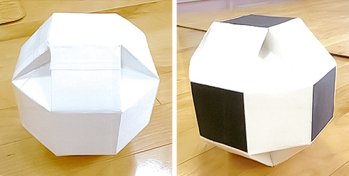 牛乳パック2本使用。右はサッカーボール仕様に。
