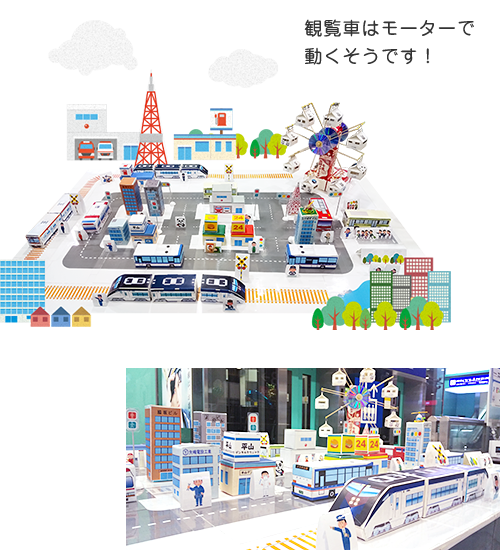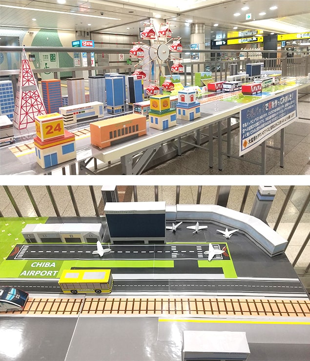 京成電鉄・日暮里駅の駅構内に、牛乳パックでつくった乗りものの街