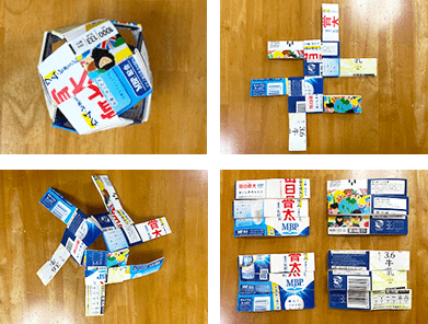 横浜市青葉区の玉桜AKEさんから、すてきな紙パック工作の作品を紹介いただきました。