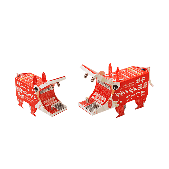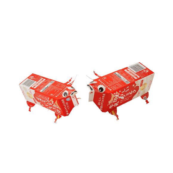 牛乳パックで作る牛さんです。たくさん作って、ならべてみましょう。