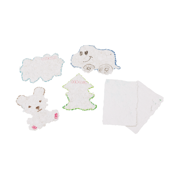 牛乳パックから、はがきが作れます。自分で作ったはがきをおくってみよう!