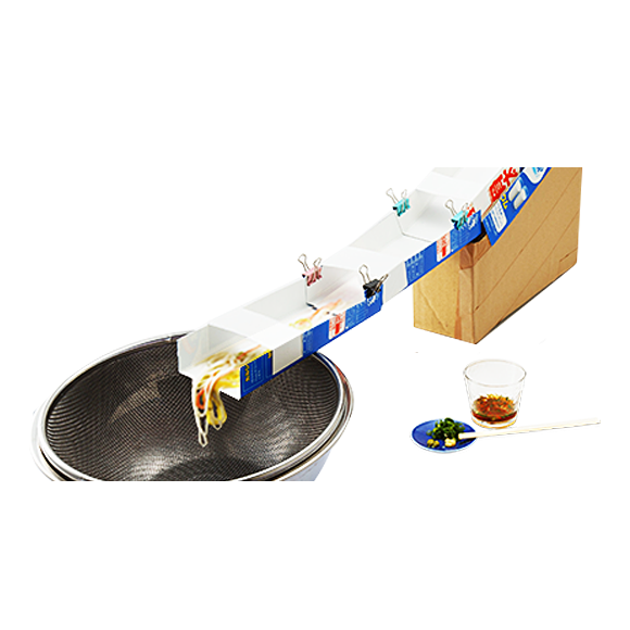 紙パックを利用(りよう)して、みんなで流し(ながし)ソーメンを楽しもう(たのしもう)。※紙パックはよくあらってから作ってね。