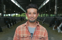 引き継いだ直後は、子牛を育てて高く売ろうとしたが、とても、北海道産にはかなわないと思い、2年目、搾乳に方針転換。50頭、100頭、300頭と乳牛を増やして、現在に至っています。また、酪農を志す研修生を受け入れており、今までに100人以上がこの牧場から巣立っています。