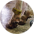 山本さんは、「『見える化』は搾乳以外でも行っているよ。例えば、牛一頭ずつに万歩計を付け、調子が悪い牛が居ないかコンピューター管理している。また、牛の足に青・赤・黄色のバンドを付け、搾乳の状況が誰でもひと目で分かるようにしている。」とのこと。