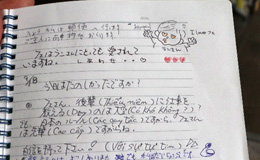 交換日記を書く智津子さん。親しみやすいようにイラスト入りで、時には学んだベトナム語も交えています。
