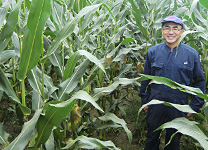 山本さんは、7年前から乳牛用飼料としてデントコーン(とうもろこし)の作付けに挑戦しています。道東地区は、気温が低く、夏でも20℃くらいの時もあります。そのため、とうもろこしの生育にはあまり適していませんが、現在は品種改良も進んでおり、雪印種苗(株)の協力のもと、デントコーンの作付面積は140haまで拡大しています。ほかにもアルファルファ等の牧草地が30haありますが、酪農経営にとって、牧草や飼料作物の品質や収量は生乳生産に影響を及ぼすため、とても大切です。
