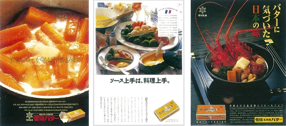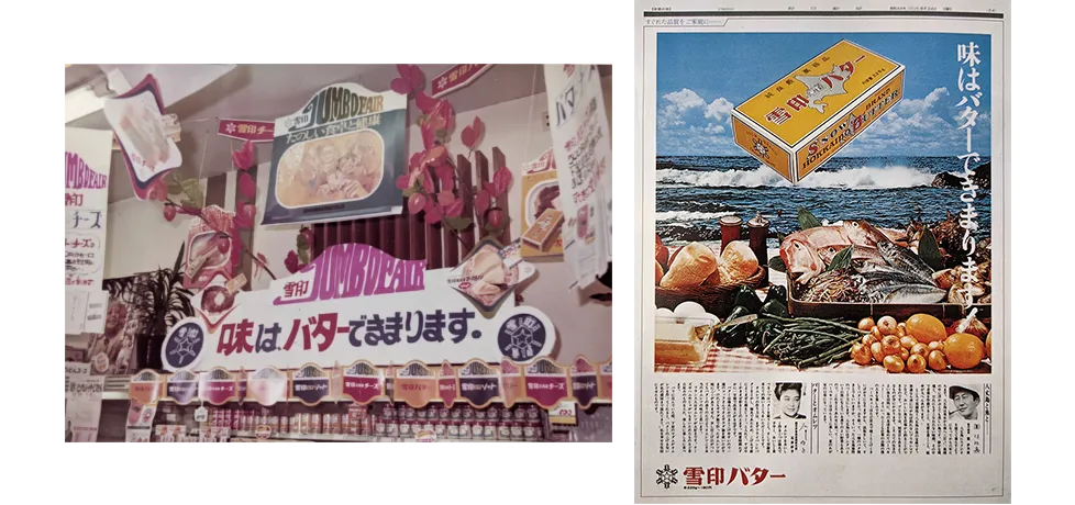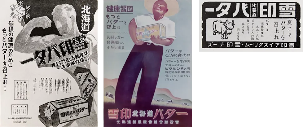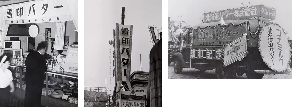 1930年(昭和5年)頃には、他社に先駆け、当時の映画スターを使った「雪印北海道バター」の宣伝や、「料理のしおり」を作成して、日本料理に簡単にバターを使える方法を普及することで、バターの宣伝をおこないました。