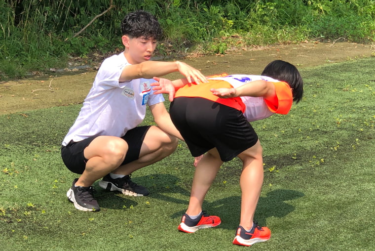 選手が日々のトレーニングで実施しているウォーミングアップを一緒に行ったり、参加したジュニアジャンパーひとりひとりにジャンプ技術向上のアドバイスを行うなど、ジャンプ人口の拡大、育成にも取り組んでいます。