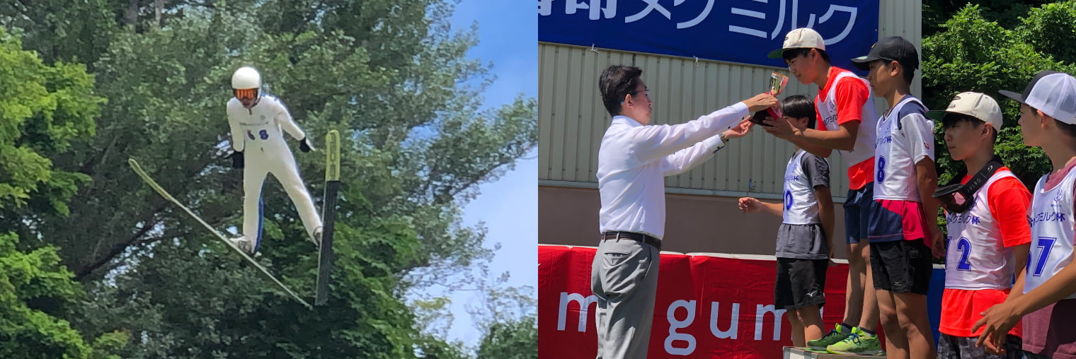 オリンピックや世界選手権などで活躍した著名なスキージャンパーたちも、地元のスキージャンプ少年団などに所属して、小さいときからジャンプに親しみ、ジュニア組、少年組の大会で経験を積み、頭角を現してきます。雪印メグミルクは、小中学生のスキージャンプ振興と育成、子どもたちの活躍の場をより多く提供することで、未来へ羽ばたく選手を応援します。