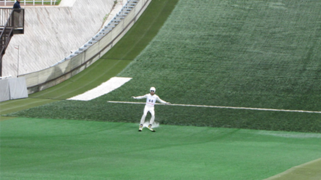 ジャンプ台のスタートゲートからカンテの部分までの助走路のことを言います。大倉山のアプローチは幅2.5m、長さは101mになります。