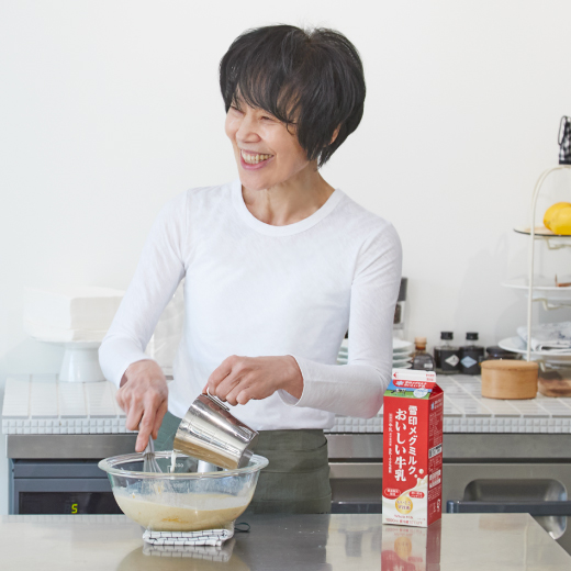 早朝起きてお風呂に入って身支度を整え、仏壇に新しい水とお茶を上げたら、1杯の牛乳を飲むのが私の習慣です。仕事で地方に滞在するときも、冷蔵庫に翌朝飲む牛乳があると安心できますね。のどが渇いているとつい、ごくごくと飲んでしまいがちですが、なるべくゆっくりと味わっています。このときおいしく飲めると今日も元気に過ごせる気がして…。私の中の健康チェックのひとつです。