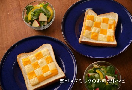 食パンの上に2種類のチーズを交互に編みこむようにのせる。