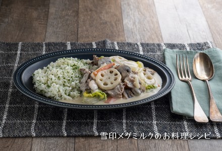 野菜たっぷり チーズ仕立ての白いビーフストロガノフ