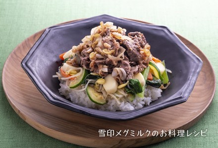 ねぎ塩焼肉と「さけるチーズ」のナムル丼