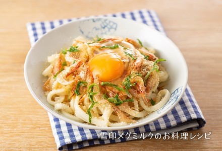 今回はカルシウムアップ!を意識して食材を追求した釜揚げ風うどんのご紹介です。ごま、桜えび、しその風味と粉チーズの旨みが見事にマッチし、素材の持ち味活きる一品になりました。