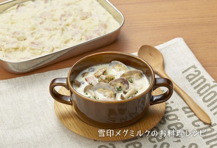 ベーコンチーズクリームを使えば、クラムチャウダーも簡単です。