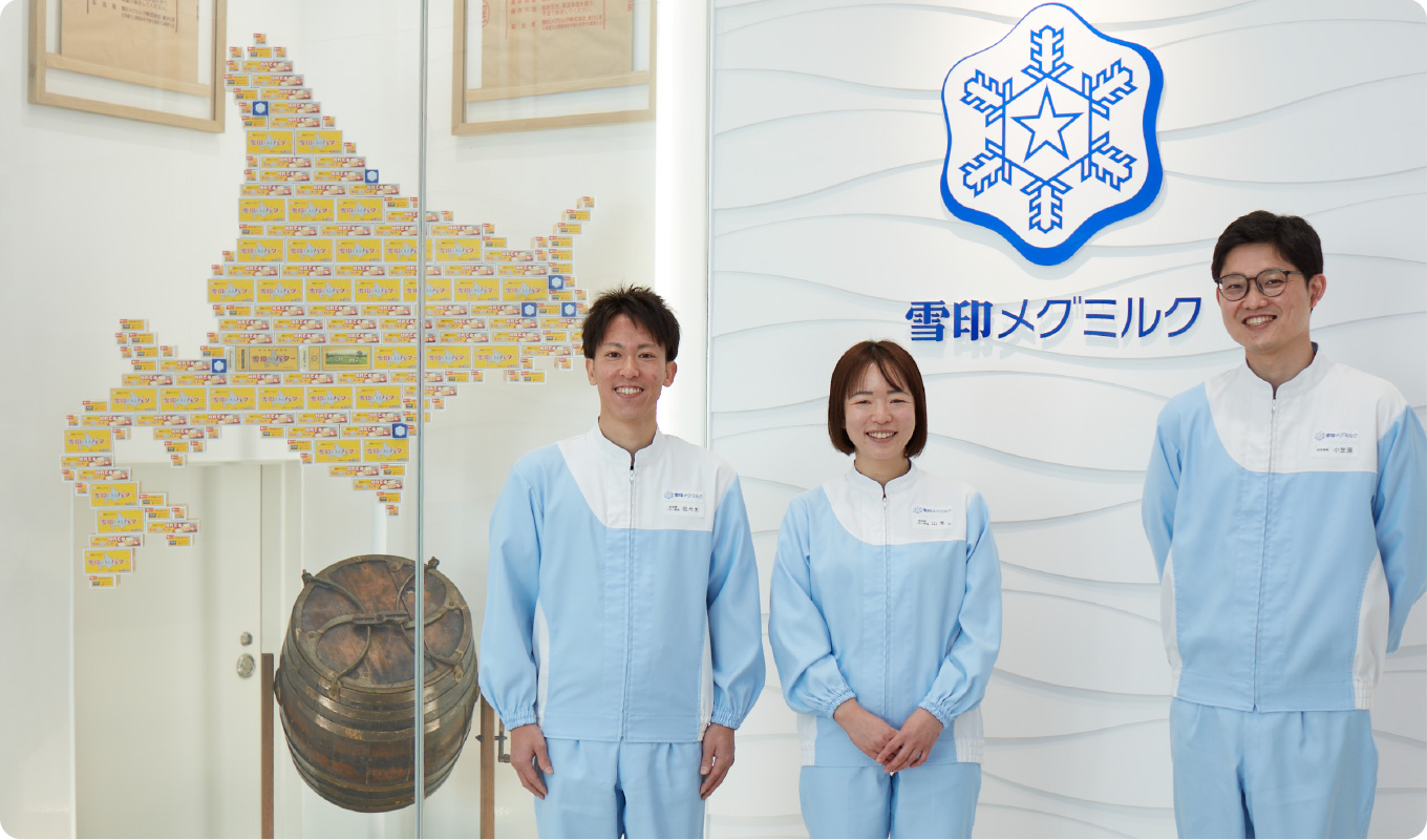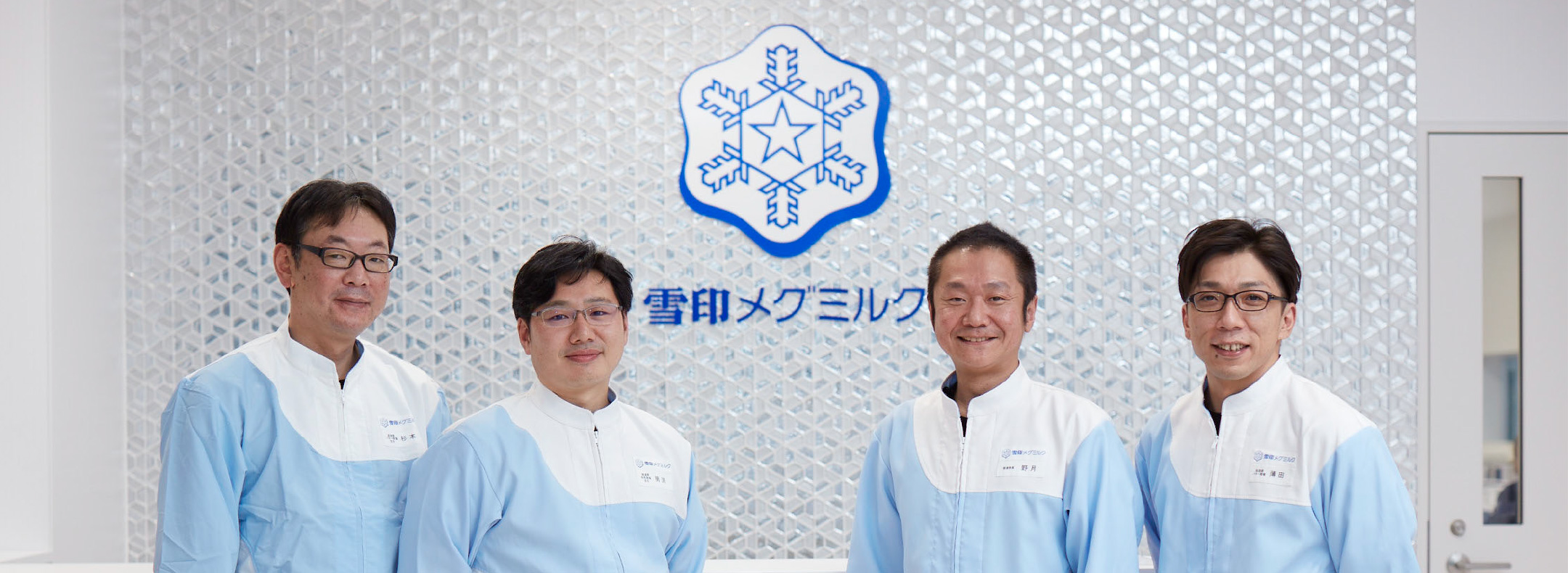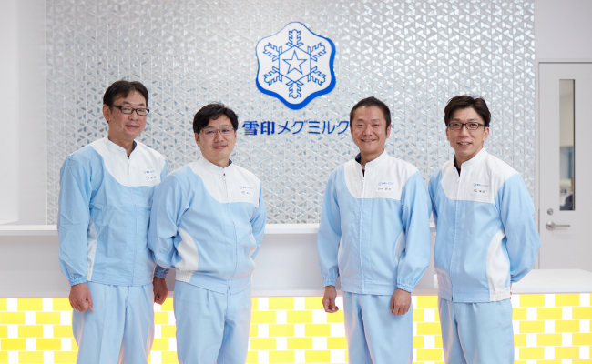 2021年4月の稼働に向け、生産部と生産技術部、磯分内工場が三位一体となって走り始めた一大プロジェクト。工場側製造関連の統括責任者に抜てきされた野月製造課長のもとには、バターや粉乳のプロフェッショナルたちが集結しました。