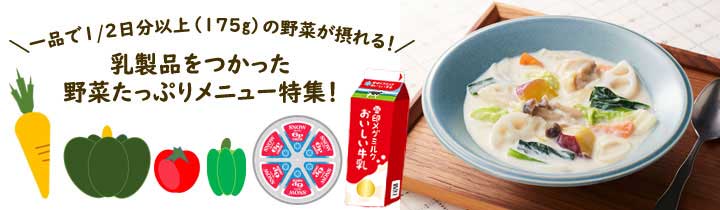 一品で1/2日分以上(175g以上)の野菜が摂れる!乳製品をつかったメニューのご紹介。