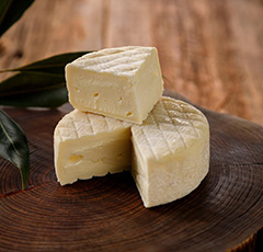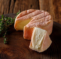 このチーズの外皮は厚めでクリーム色~オレンジ色をしており、表皮を除いて、中身の黄色がかったトロリとした部分を味わうチーズです。