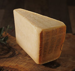 温めたミルクに乳酸菌、レンネット(凝乳酵素)を加えることにより、カゼイン(主な乳たんぱく質)が凝固します。その凝固したもの(凝乳)からホエイ(乳清)を除去すると、カードができます。そのカードを型に入れ、圧搾し、食塩水に浸し表皮を作ります。熟成は16ヶ月~3年、水分の蒸発を防ぐために表面に麻の種子から取った油をすり込んでいるので表皮はつややかです。高温熟成させないので気孔はできません。
