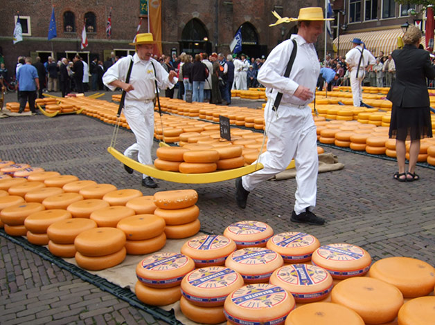 またオランダ名物である、黄色いワックスで固められた大きな丸い「ゴーダチーズ」は、誰でも一度は見たことがあるのではないでしょうか。特徴的なあの硬さと上下が平らな形状は、船で輸出する際の利便性から生まれたものです。古くから海運大国だった、オランダならではのエピソードです。