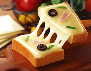 中でも『ピザタイム』はフィルムで個包装されたスライスチーズタイプで、若干スパイス風味が加えられ、まさにこれ一枚でピザトーストが完成するという画期的な商品だったのです。しかし、惜しむらくはその“とろけ方”。加熱すると確かにとけるのですが、モッツァレラのように糸を引くとろけ方ではなかったのです。