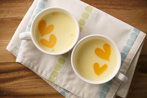 他にもハートや星形に抜いた「チェダースライス」をポタージュスープに浮かべたり、短冊状のスライスチーズと「チェダースライス」を交互に編み込むように重ね、“市松模様”のチーズトーストに仕上げたり。便利な「チェダースライス」を使えば、楽しくカワイイ“チーズレシピ”が次々と浮かんできそうですね!